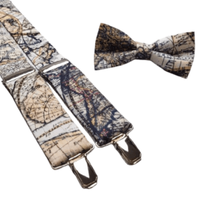 Encuentra en tu tienda online de pajaritas el mejor conjunto de pajaritas y tirantes original, friki o desenfadado, práctico e ideal para cualquier celebración. Ya sea con un estampado de anclas, inspirados en Leonardo Da Vinci o con un precioso mapa, cualquier conjunto de pajarita y tirantes podrá convertirse en un regalo perfecto.