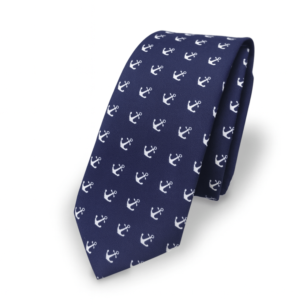 No es un adorno más ni un simple complemento. Es el accesorio masculino por excelencia, capaz de sobrevivir a todo tipo de modas. Y es que una corbata puede decir mucho de ti. En un entorno profesional forma incluso parte de la primera impresión que causas en los demás. La corbata anclas con fondo azul marino y pequeñas anclas es blanco, te quedara estupenda con cualquier outfit. Corbata estampada que te aportara frescura y un toque juvenil. Perfecta para todo el año pero en especial para la temporada primavera-verano.