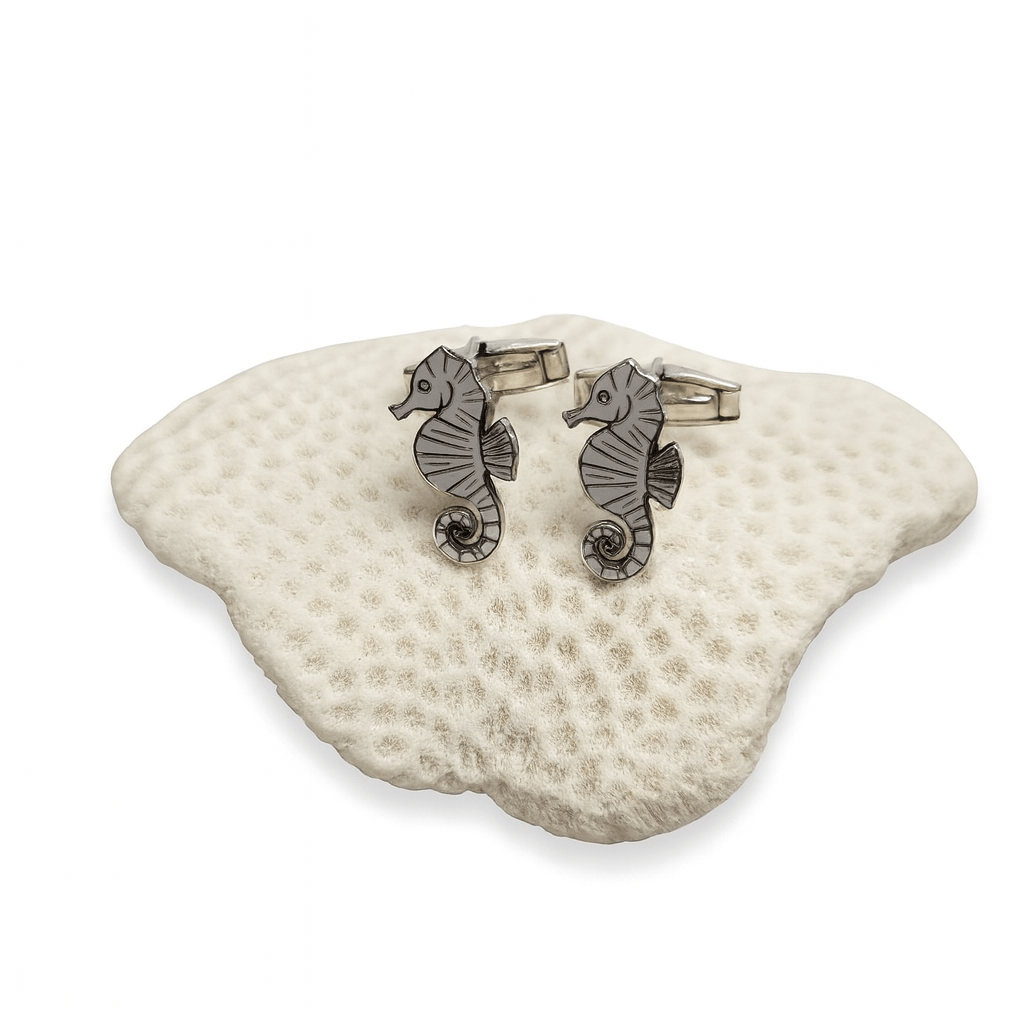Estos gemelos son perfectos para aquellos que buscan destacarse con un toque de originalidad y clase. Ya sea que los uses en una ocasión formal o para agregar un toque de estilo a tu look diario, los gemelos Caballito de Mar son una elección excepcional que no pasará desapercibida.