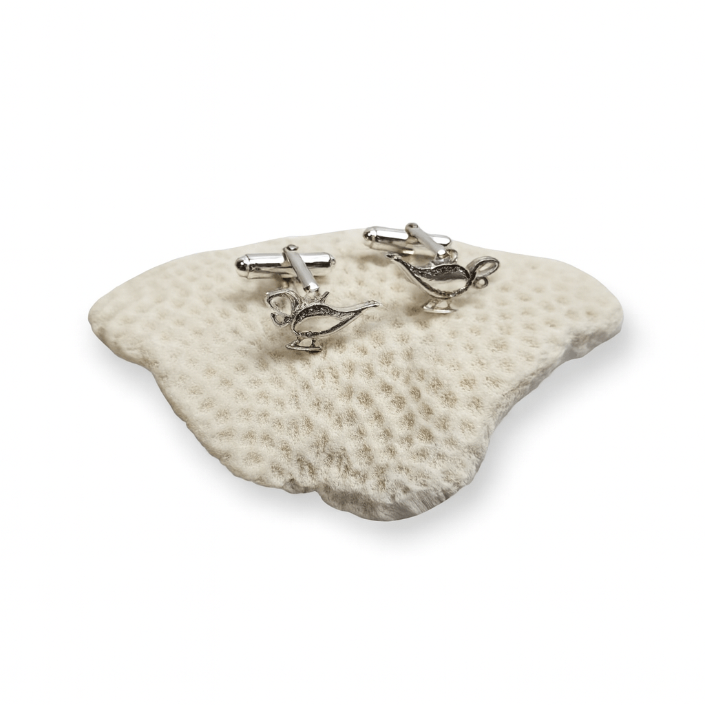 Cada par de gemelos Lámpara Genio está meticulosamente elaborado en plata de ley, lo que garantiza tanto su belleza como su durabilidad. El diseño detallado de la lámpara de genio, con su forma distintiva y sus intrincados detalles, agrega un elemento de sofisticación a cualquier camisa de puño francés.