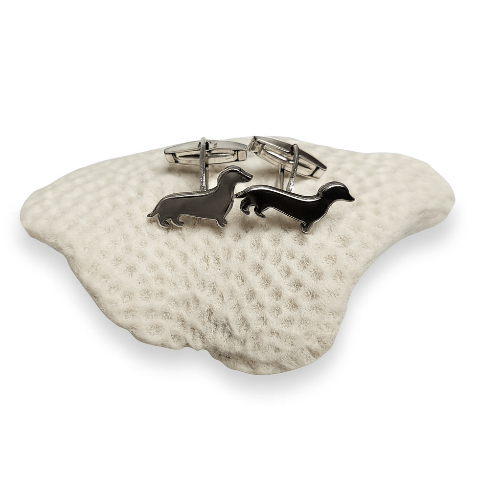 Cada par de gemelos está meticulosamente elaborado para reflejar los rasgos característicos del perro salchicha, desde su cuerpo alargado hasta sus orejas caídas y su expresión juguetona. Los detalles finos y realistas hacen que estos gemelos sean una representación fiel y encantadora de esta querida raza canina.