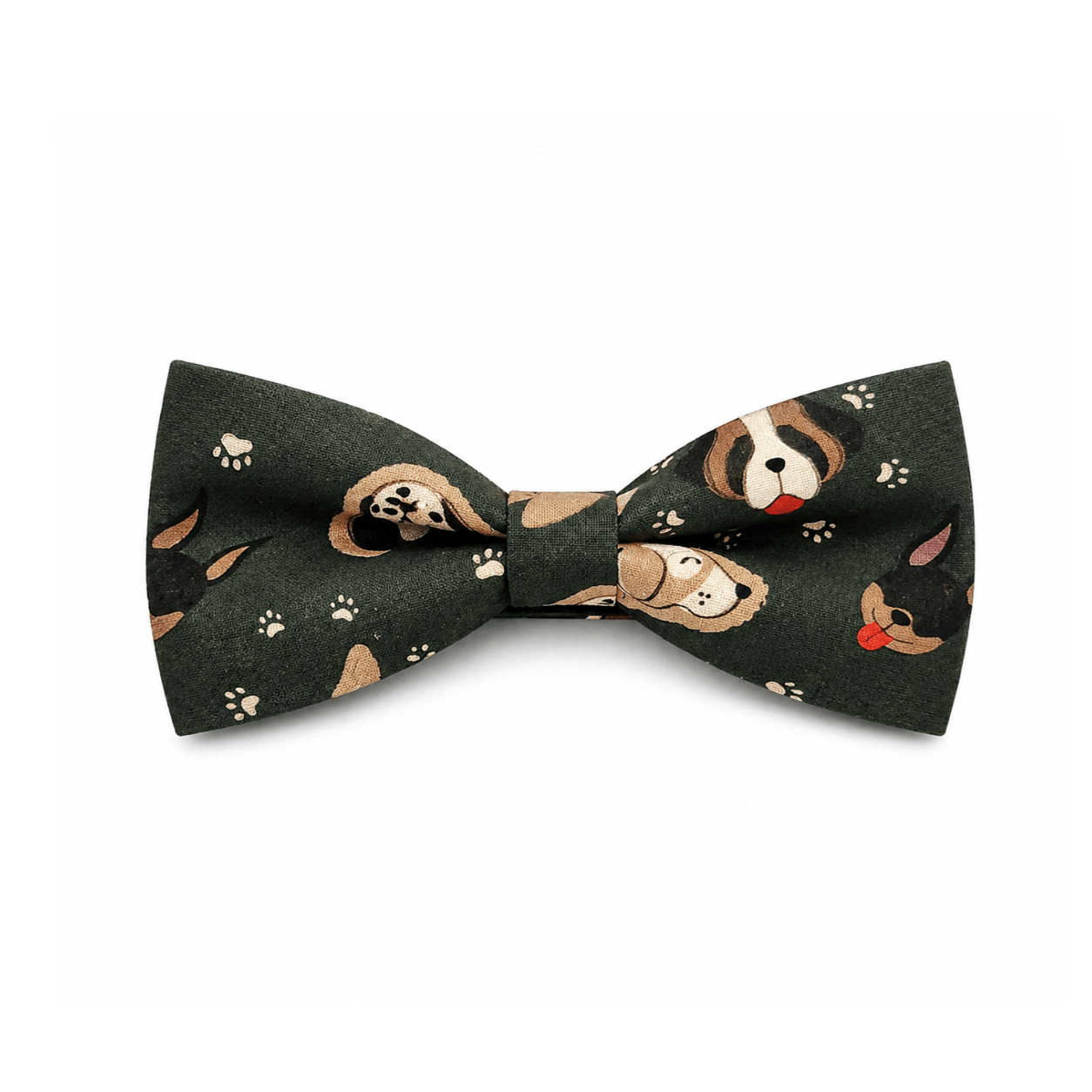 El fondo verde oscuro aporta elegancia y versatilidad, permitiendo combinarla fácilmente con trajes azul marino, gris, beige o looks más casuales con camisa blanca o vaquera. El estampado de perros añade un toque divertido y distintivo, ideal para amantes de los animales y quienes quieren un accesorio diferente.