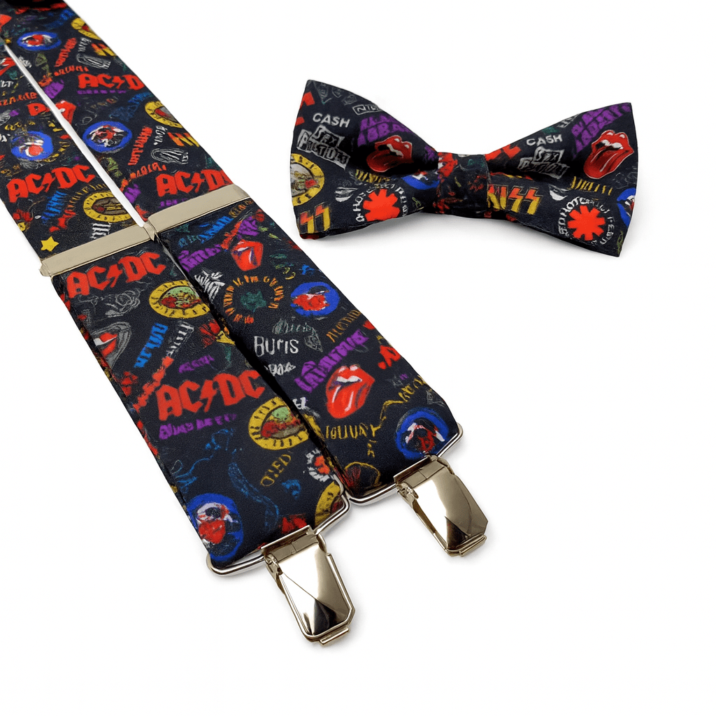 ¿Eres un amante del rock que busca expresar su pasión por la música en su estilo? ¡Estás en el lugar adecuado! Introducimos nuestra exclusiva colección, la pajarita y tirantes inspirados en los grandes grupos de rock que han marcado época.